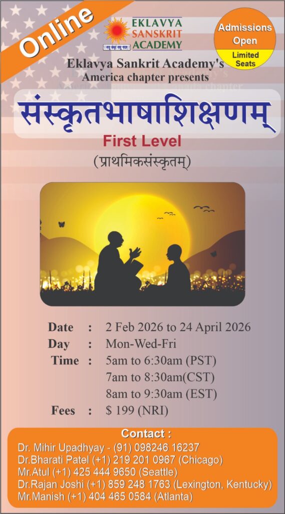 Eklavya Sanskrit Academy is devoted to the preservation, promotion, and living practice of Sanskrit, the timeless language of knowledge, culture, and wisdom with the aim of making people know Sanskrit, learn Sanskrit, and live Sanskrit as an integral part of life. We strive to spread Sanskrit across the world, connect learners beyond geographical boundaries, and create a global platform where Sanskrit is taught as a living, spoken, and communicative language, not confined only to texts. By following the Direct Method of teaching, we emphasize natural language acquisition through listening, speaking, and meaningful interaction, allowing learners to experience Sanskrit in its authentic and vibrant form, making it accessible, relevant, and meaningful to everyone, regardless of background. Join us and become a part of this beautiful journey of learning Sanskrit.